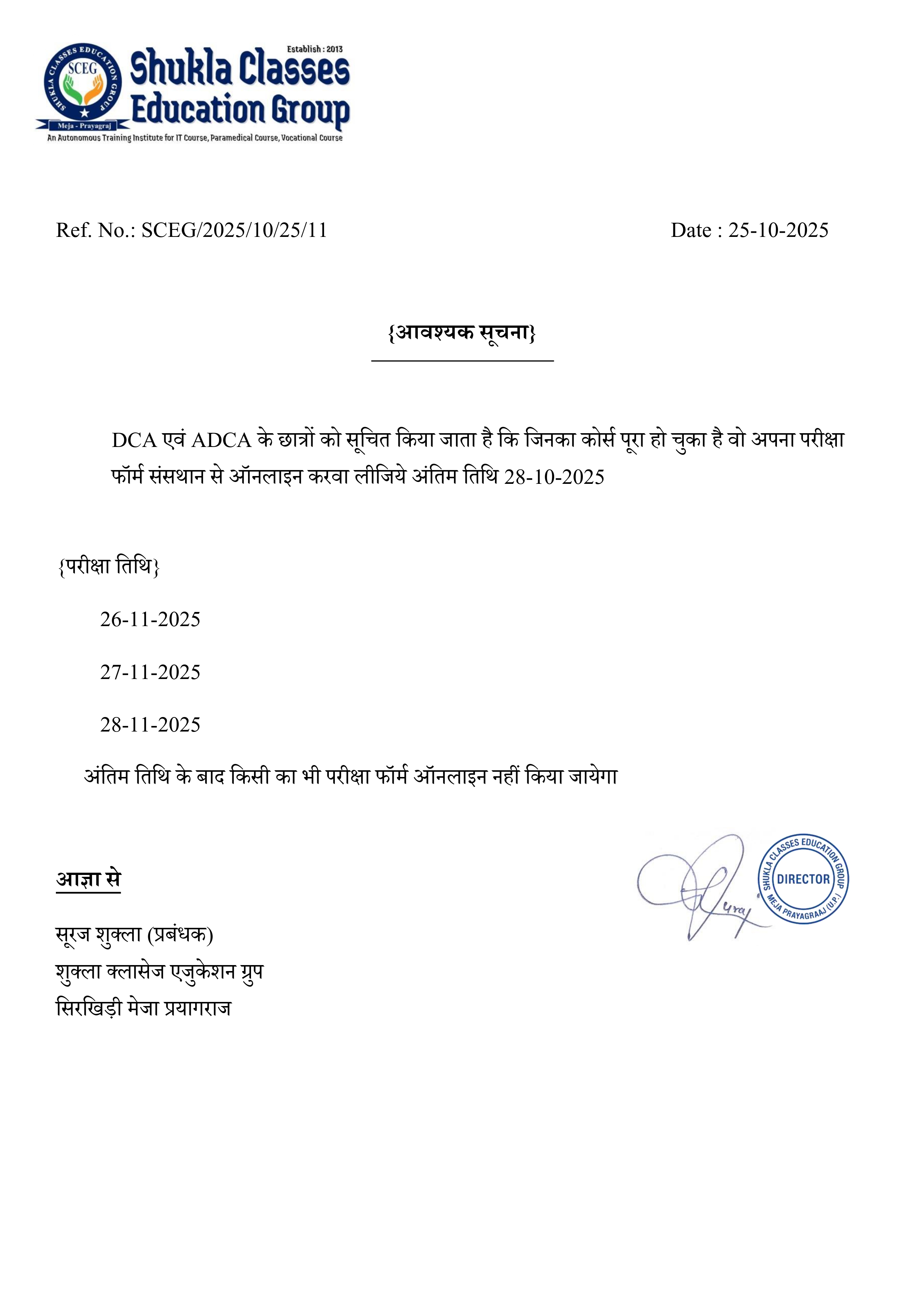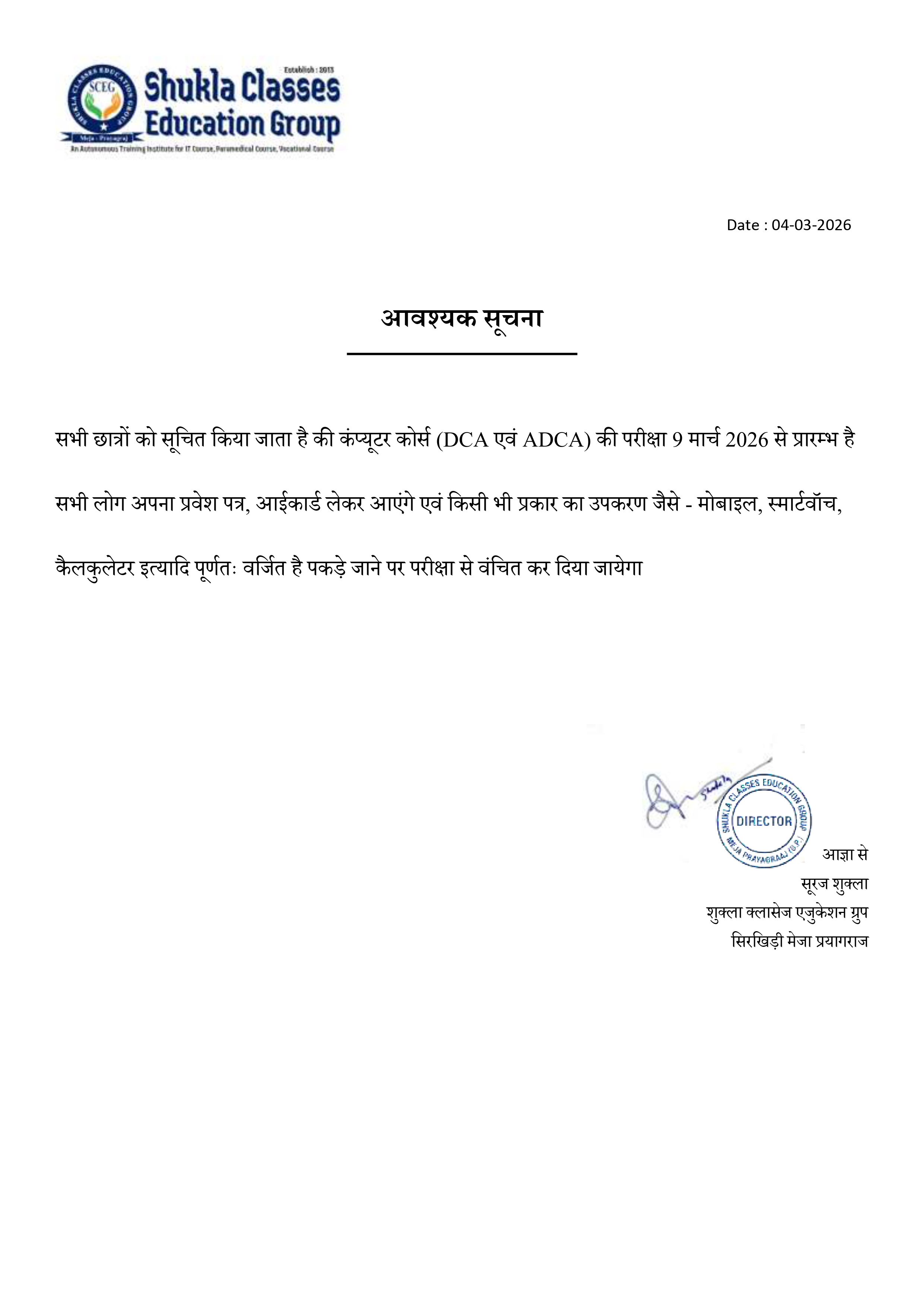 NAME : VIKASH PANDEYCOURSE : DCAPOST : COMPUTER ASSISTANT, POST OFFICE HANDIACENTER : SHUKLA CLASSES EDUCATION GROUPNAME : SHEETAL MISHRACOURSE : ADCAPOST : COMPUTER ASSISTANT, POST OFFICE AGRACENTER : SHUKLA CLASSES EDUCATION GROUPNAME : RAGINI SINGHCOURSE : DCAPOST : COMPUTER ASSISTANT, SERCO GLOBAL SERCO, NOIDACENTER : SHUKLA CLASSES EDUCATION GROUPNAME : ROSHAL LALCOURSE : ADCAPOST : COMPUTER ASSISTANT, GENPACT GURGAONCENTER : SHUKLA CLASSES…